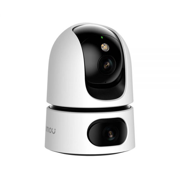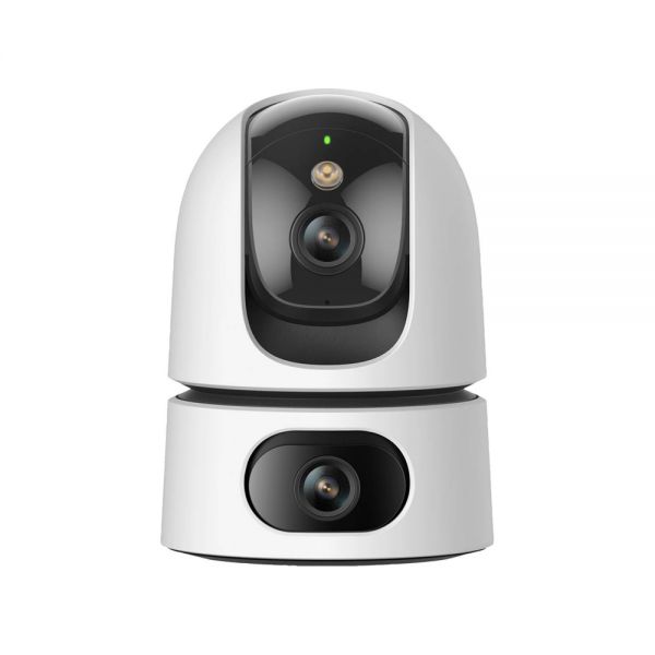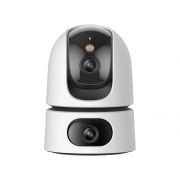 Cámara IP Wi-Fi con doble lente que combina un lente fijo y un lente PTZ, ofreciendo una cobertura completa y flexible para interiores con alta definición.