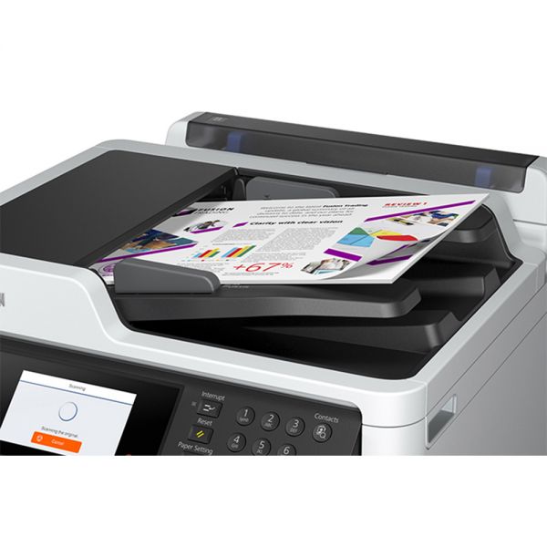 Multifuncional a color de alto rendimiento, diseñada para pequeñas y medianas oficinas que necesitan eficiencia, velocidad y bajo costo por página. Ofrece impresión, copiado, escaneo y fax con tecnología Epson PrecisionCore.