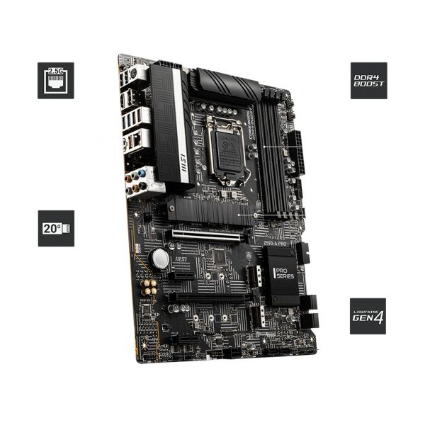 Esta placa base es compatible con procesadores Intel Core™ de 10.ª y 11.ª generación, así como Pentium Gold y Celeron, utilizando el socket LGA 1200. Admite memoria DDR4 con velocidades de hasta 5333 MHz (OC) para un rendimiento mejorado. Está diseñada para ofrecer una experiencia ultrarrápida gracias a la compatibilidad con PCIe 4.0, almacenamiento Lightning Gen4 x4 M.2 con disipación M.2 Shield Frozr, e interfaces Intel Turbo USB 3.2 Gen 2. Incorpora una solución térmica premium con un disipador extendido y M.2 Shield Frozr, ideales para mantener un sistema estable durante trabajos intensivos y prolongados. Además, ofrece conectividad de red avanzada con LAN 2.5G para una conexión rápida, segura y estable, perfecta para entornos profesionales o multimedia. La tecnología Audio Boost mejora la calidad del sonido, brindando una experiencia auditiva de nivel estudio. También es compatible con configuraciones multi-GPU mediante ranuras PCI-E con armadura de acero y soporta AMD Crossfire™ bidireccional para potenciar el rendimiento gráfico.