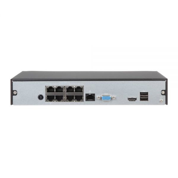 El NVR Dahua (1108HS-8P) es un grabador de video en red diseñado para la gestión y grabación de hasta 8 cámaras de seguridad IP. Este modelo cuenta con 8 puertos PoE que permiten la conexión directa de cámaras IP compatibles, lo que facilita la instalación y el cableado al eliminar la necesidad de una fuente de alimentación externa para las cámaras.