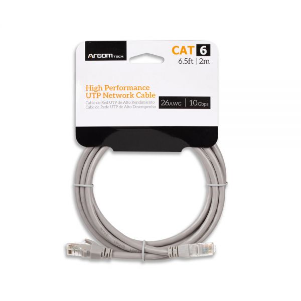 Cable de red UTP Cat6 de 2 m en color gris, ideal para conexiones de red rápidas y estables entre routers, switches, computadoras y otros dispositivos con puerto RJ‑45.