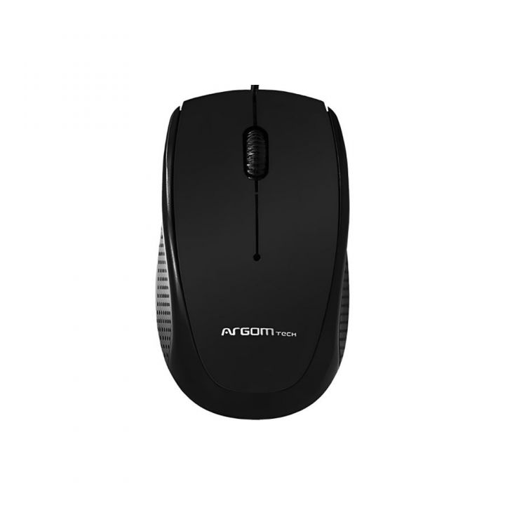 Mouse Argom ARG‑MS‑0014B negro, óptico con cable USB, diseñado para uso diario con ergonomía cómoda y funcionamiento preciso.