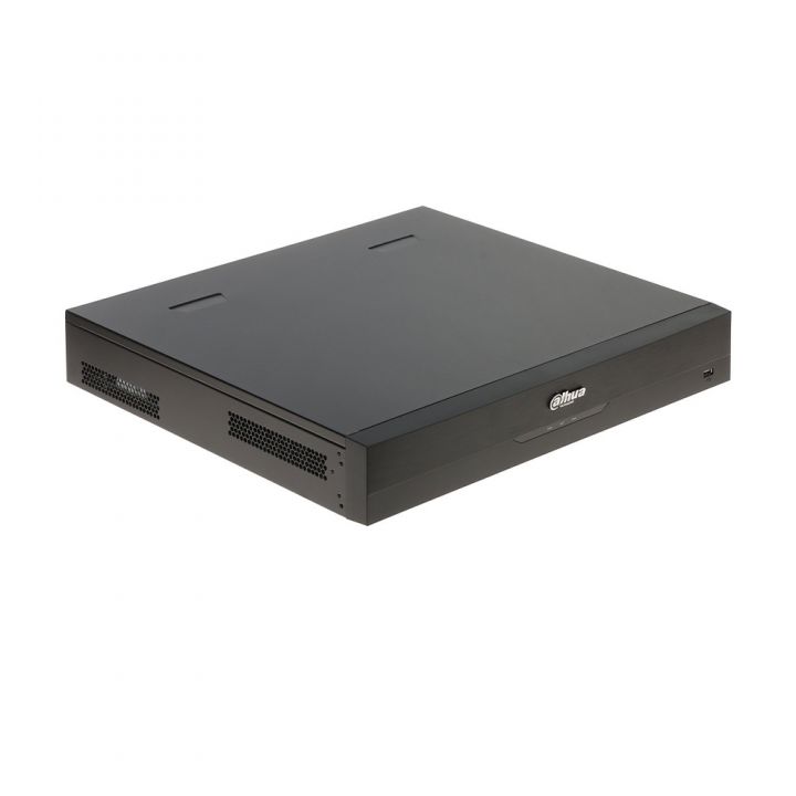El equipo admite formatos de compresión inteligente H.265+, H.265, Smart H.264+, H.264 y MJPEG, con una capacidad máxima de decodificación de 32 canales a 1080p o 2MP a 30 fps. Soporta un ancho de banda máximo de 384 Mbps para entrada, grabación y salida. Incorpora la función AcuPick en hasta 16 canales y es compatible con clúster N+M. En cuanto a inteligencia artificial, permite detección y reconocimiento facial en 2 canales, protección perimetral en 4 canales y SMD Plus en 8 canales desde el grabador, mientras que a nivel de cámara admite funciones avanzadas como reconocimiento facial, protección perimetral, SMD Plus, metadatos, ANPR, análisis estéreo, mapa de calor y conteo de personas. Incluye además línea base de seguridad versión 2.3.