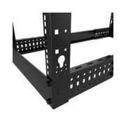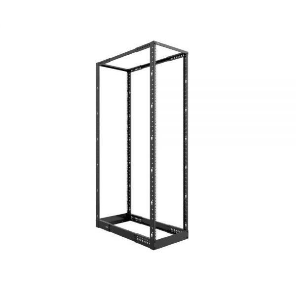 Rack abierto de 42U en acero, ideal para montaje de servidores y equipos de red con ventilación natural y gran capacidad de carga.